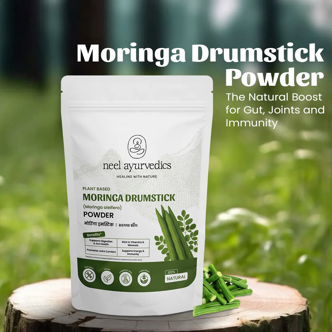 Experience a wholesome addition to your wellness routine with Neel Ayurvedics Moringa Drumstick Powder, traditionally known as Saragva or Shing in Ayurveda. Carefully crafted from nutrient-rich Moringa oleifera leaves, this botanical blend offers a natural way to support gut health, enhance energy, and maintain joint flexibility.