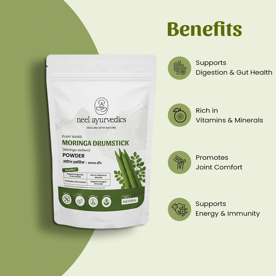• Boosts Immunity : Packed with vitamins A and C, Neel Ayurvedics Moringa Drumstick Powder gives your immune system a natural lift, helping you fight off seasonal bugs and stay strong year-round.