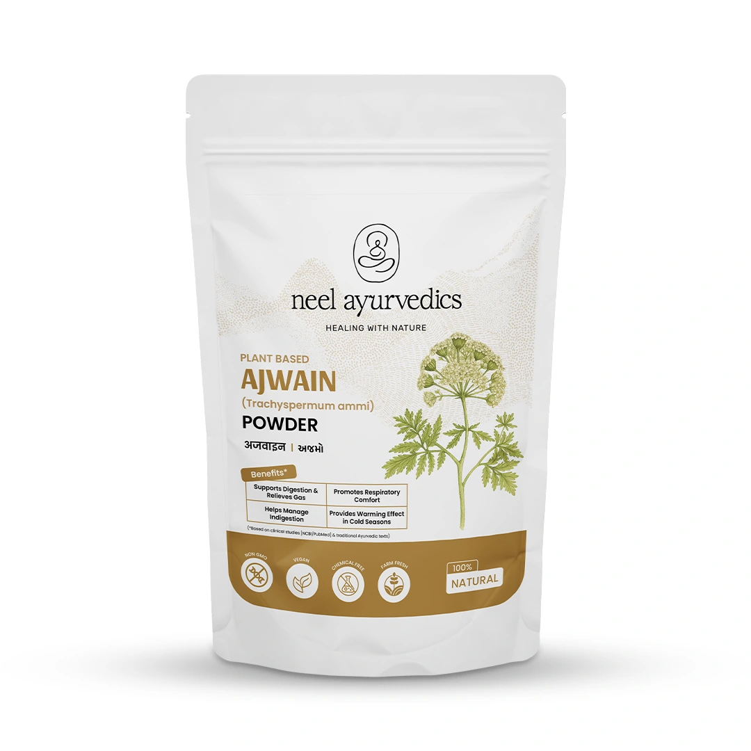 Neel Ayurvedics Ajwain Powder, also known as Carom Seeds Powder (Trachyspermum ammi), is a natural wellness essential carefully crafted for modern UK lifestyles. Rooted in the wisdom of Ayurveda and trusted for generations, this herbal powder is valued for its ability to ease indigestion, reduce bloating, and bring comfort after meals.