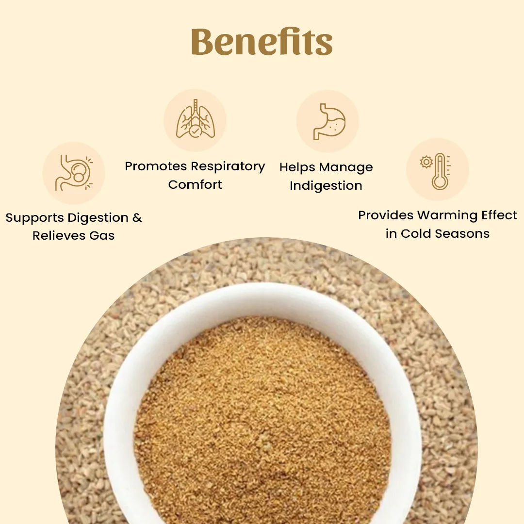 Known for its natural ability to comfort the stomach, relieve bloating, and ease digestion, Ajwain also supports respiratory health by soothing coughs and seasonal discomfort. Rich in heritage and wellness, our Ajwain Powder is more than just a spice – it’s a daily companion for balance, vitality, and overall well-being.