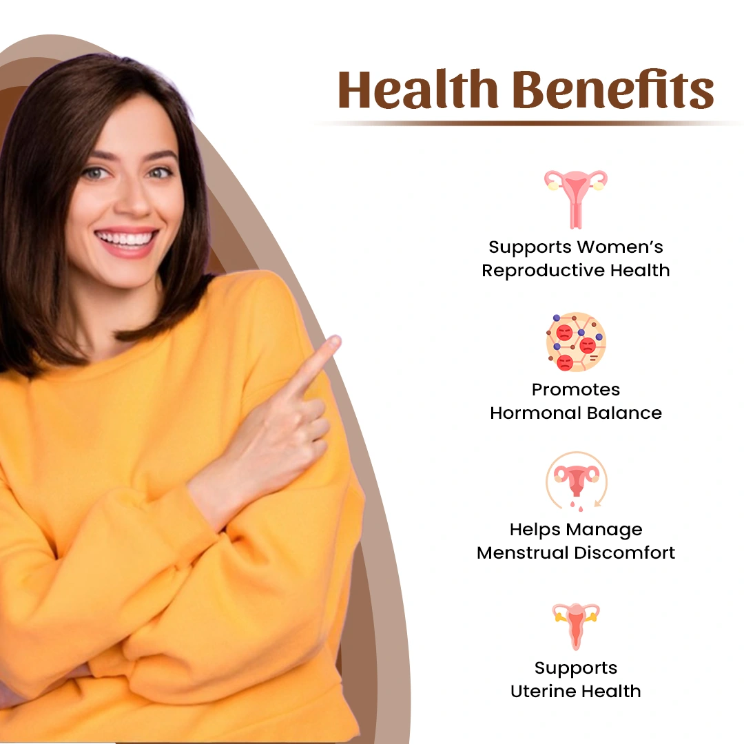 - Menstrual Support: Helps regulate cycles, reduce heavy bleeding, and relieve cramps naturally.