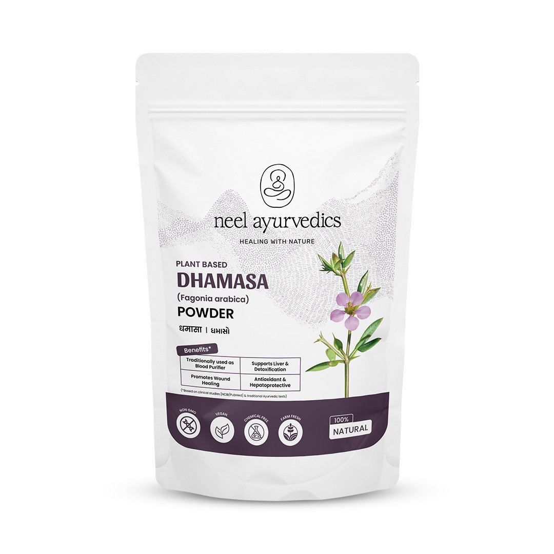 Discover the holistic benefits of Neel Ayurvedics Dhamasa Powder, a traditional Ayurvedic herbal powder renowned in Himalayan wellness practices. This natural remedy works as a potent liver tonic, anti-inflammatory, and anti-asthmatic agent, helping purify the blood and support overall health. It is especially effective in dissolving blood clots, protecting against heart problems and brain haemorrhage, and strengthening the digestive system.