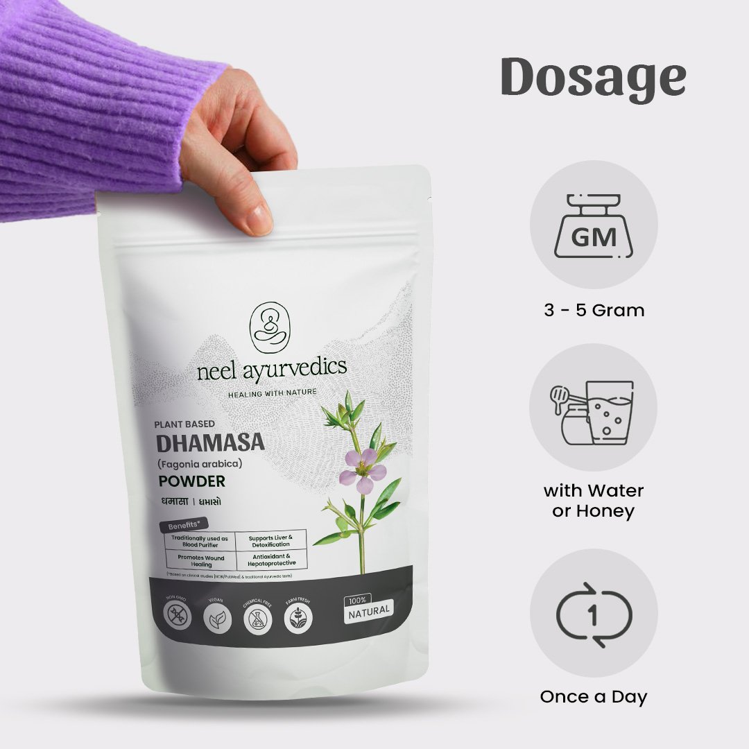 2. How do I take Neel Ayurvedics Dhamasa Powder?