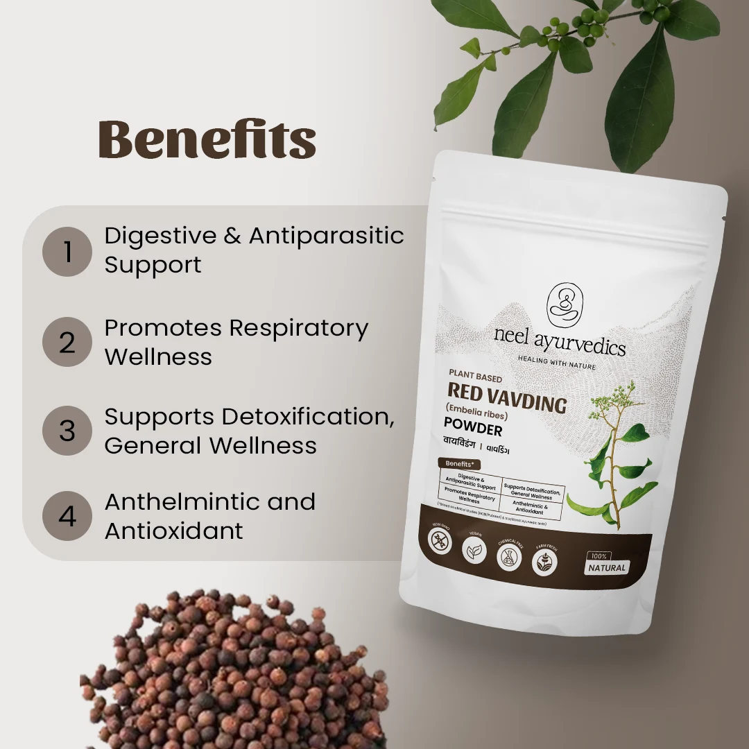 - Whether you’re dealing with bloating, low energy, or just want to support your body naturally,Neel Ayurvedics Red Vavding Powder is a smart addition to your daily wellness routine.